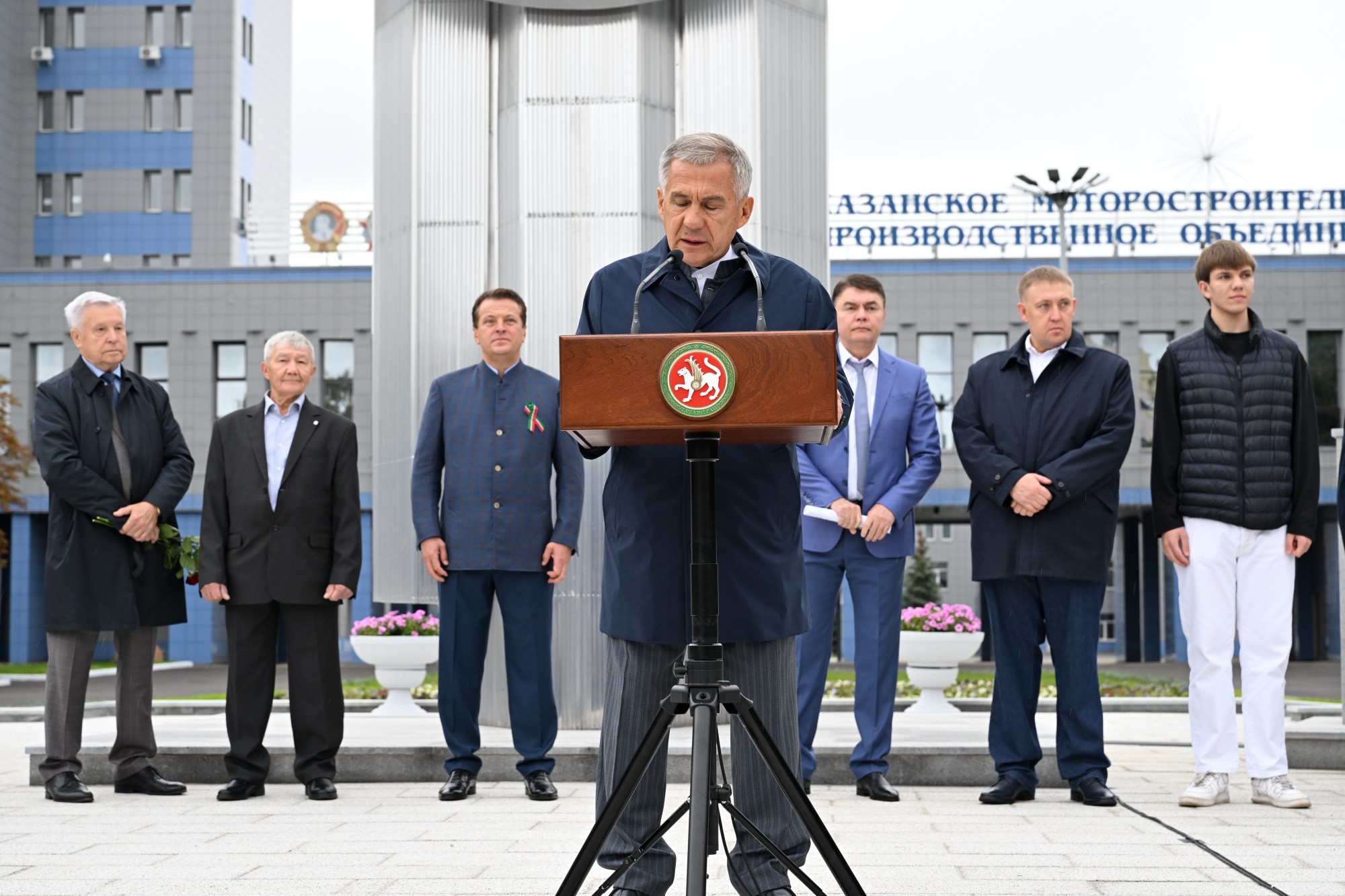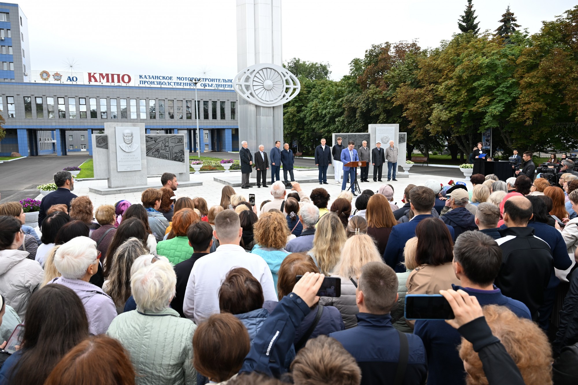 На площадке перед АО "КМПО" состоялось открытие барельефа генерального директора АО "КМПО" Александра Павлова и памятной стелы, посвященной истории завода. Церемония прошла с участием Раиса Татарстана Рустама Минниханова, мэра Казани Ильсура Метшина и президента АПП РТ Александра Лаврентьева.