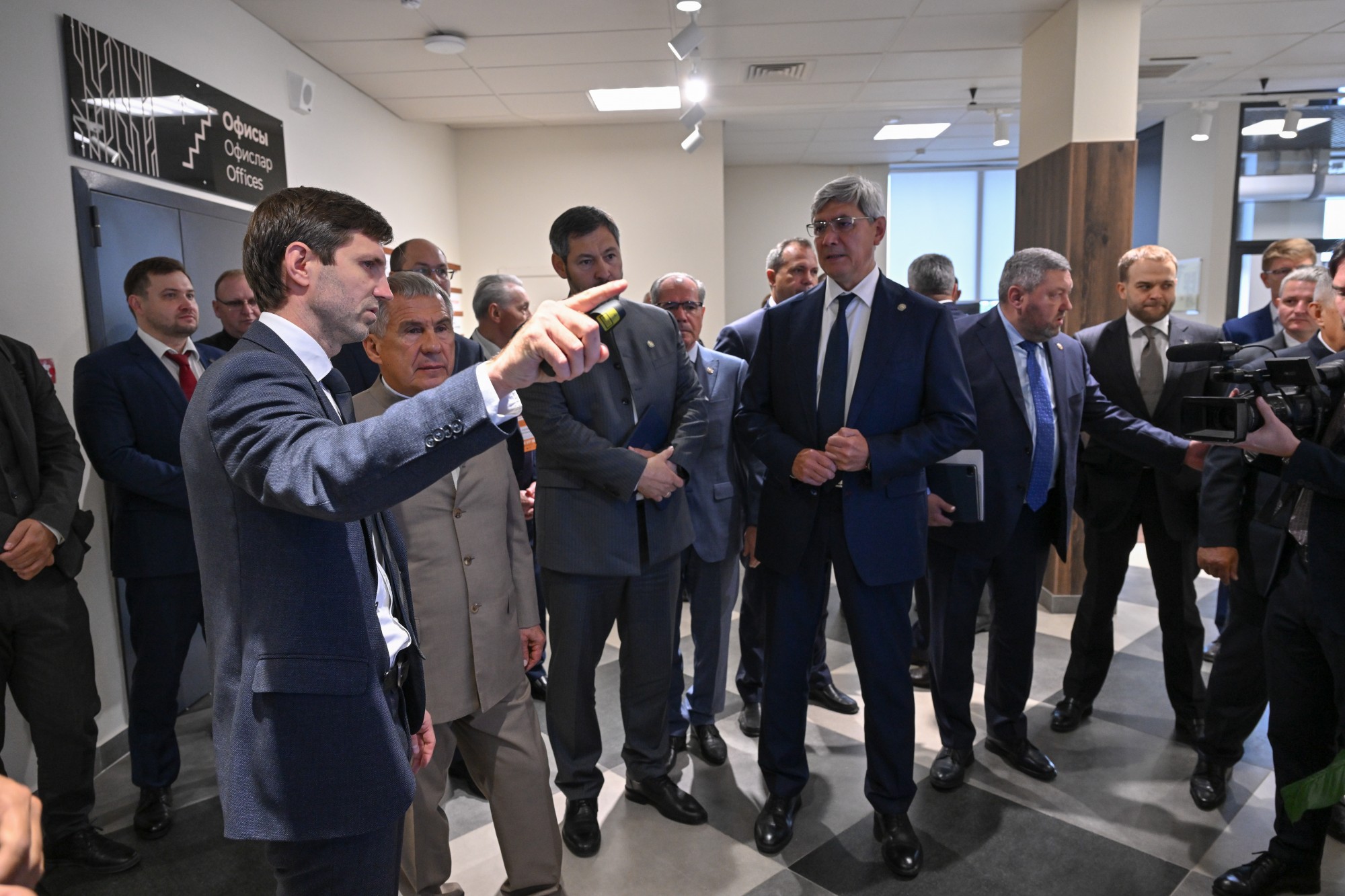 В Иннополисе в Технопарке им. А.С. Попова прошло семинар-совещание с директорами промышленных предприятий республики по вопросу внедрения и использования в производстве робототехники. Мероприятие состоялось с участием Раиса Татарстана Рустама Минниханова. От АПП РТ участвовали генеральный директор Алексей Пахомов, заместители генерального директора Игорь Рассман, Виктор Дмитриев, Тимур Халиков.Перед началом совещания участники посетили производственную площадку Центра развития промышленной робототехники Университета Иннополис, ознакомились с перспективными разработками робототехнических комплексов и систем автоматизации производства. Среди проектов: ИИ-система промышленной ультразвуковой томографии для поиска дефектов сварных соединений "СПРУТ", роботы-сварщики для работы с металлоконструкциями из стали, алюминия и меди, а также робот-паллетайзер для автоматизации упаковки и транспортировки товаров в пищевой и перерабатывающей промышленностях.